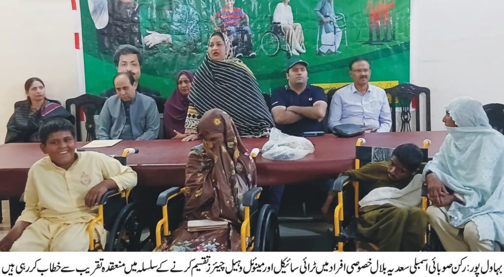 بہاول پور(ڈسٹرکٹ رپورٹر) رکن صوبائی اسمبلی سعدیہ بلال نے کہا ہے کہ خصوصی افراد معاشرے کا قابلِ فخر حصہ ہیں، ان کی فلاح و خود انحصاری حکومت پنجاب کی اولین ترجیح ہے۔ ان خیالات کا اظہار انہوں نے خصوصی افراد میں 41مینوئل وہیل چیئرز،5ٹرائی سائیکل اورایک موبائل ٹوائلٹ تقسیم کرنے کے سلسلہ میں منعقدہ تقریب سے خطاب کرتے ہوئے کیا۔ اس موقع پر ڈپٹی ڈائریکٹر سوشل ویلفیئر محمد عزیر اور مسلم لیگ ن لائرز فورم کے سینئر نائب صدر بلال ملک ایڈووکیٹ بھی موجود تھے۔ انہوں نے کہا کہ وزیر اعلیٰ پنجاب کی ہدایت پر ایک ارب روپے سے زائد کی خطیر رقم سے وہیل چیئرز، مصنوعی اعضا، سماعت کے آلات اور دیگر معاون آلات بالکل مفت فراہم کیے جا رہے ہیں تاکہ خصوصی افراد کو خود مختاری اور باعزت زندگی کے مواقع فراہم کیے جا سکیں۔رکن صوبائی اسمبلی نے کہا کہ مسلم لیگ ن ہمیشہ عوامی خدمت کے جذبے کے تحت خصوصی افراد کیلئے امید، حوصلے اور خود اعتمادی میں معاون رہی ہے۔ ڈپٹی ڈائریکٹر محمد عزیر نے بتایا کہ حکومت پنجاب کا یہ پروگرام محکمہ سوشل ویلفیئر کے زیر اہتمام جاری ہے، جس میں ہزاروں مستحق افراد کو مفت سہولیات فراہم کی جا رہی ہیں